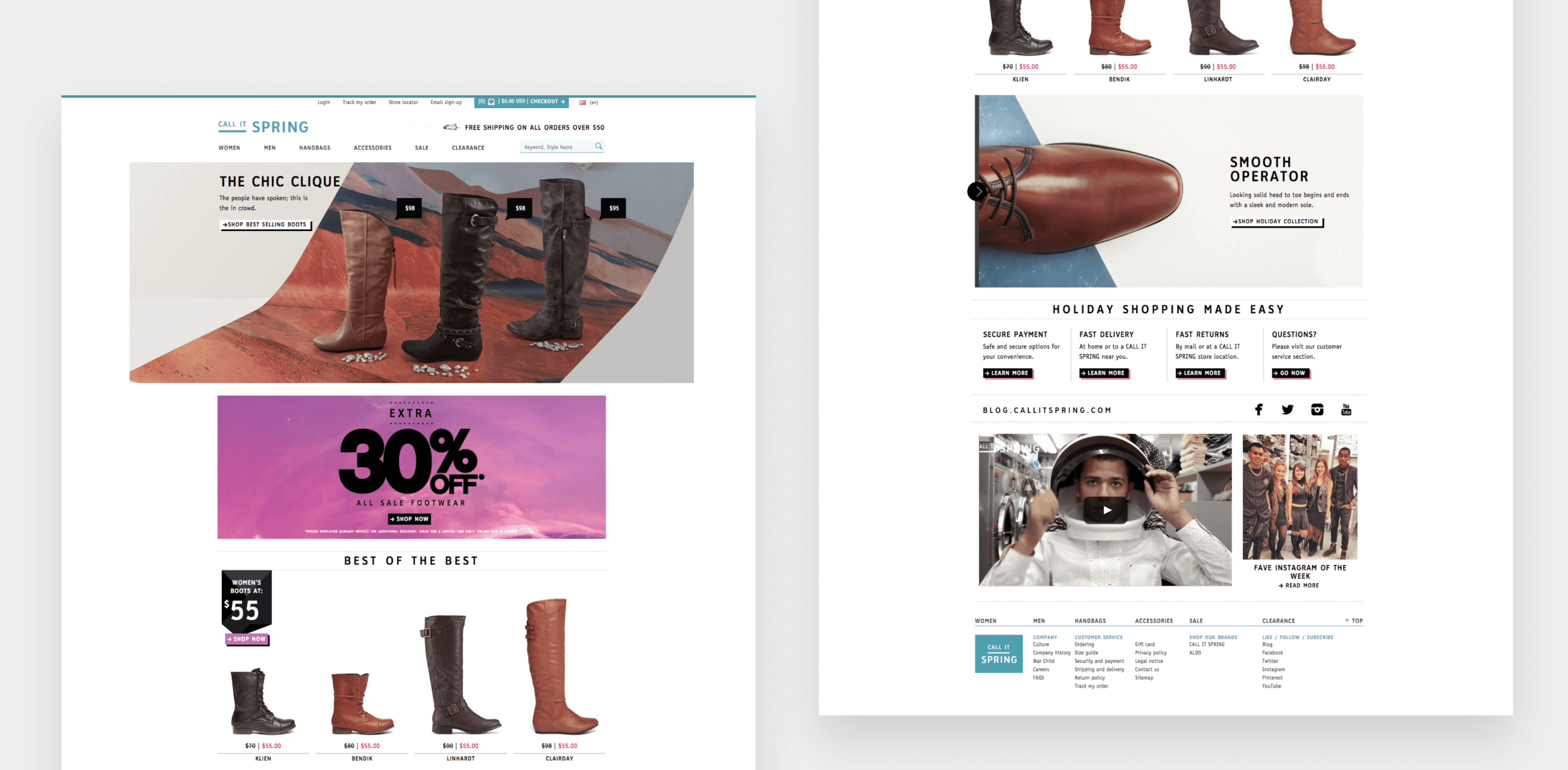 Understanding our target users: young, trend-conscious individuals seeking affordable, stylish footwear, was foundational to the redesign. Our goal was to create an intuitive and visually compelling experience that aligned with the Fall/Winter campaign. By leveraging CMS data, user feedback, and click analytics, we identified key strengths and areas for improvement to better showcase seasonal products, drive engagement, and support sales.